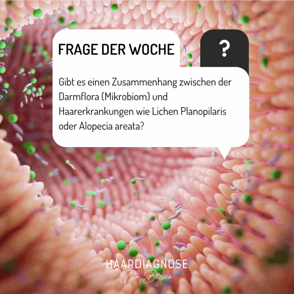 Gibt es einen Zusammenhang zwischen der Darmflora (Mikrobiom) und Haarerkrankungen wie Lichen Planopilaris oder Alopecia areata? Antwort:Ja, es gibt Hinweise, dass das Mikrobiom (die Bakterienzusammensetzung im Darm) bei Autoimmunerkrankungen eine Rolle spielt.• Studien zeigen Unterschiede in der… Frage der Woche: Gibt es einen Zusammenhang zwischen der Darmflora (Mikrobiom) und Haarerkrankungen wie Lichen Planopilaris oder Alopecia areata? weiterlesen - Trichoskopie bei seborrhoischer Dermatitis – was ist wirklich typisch?