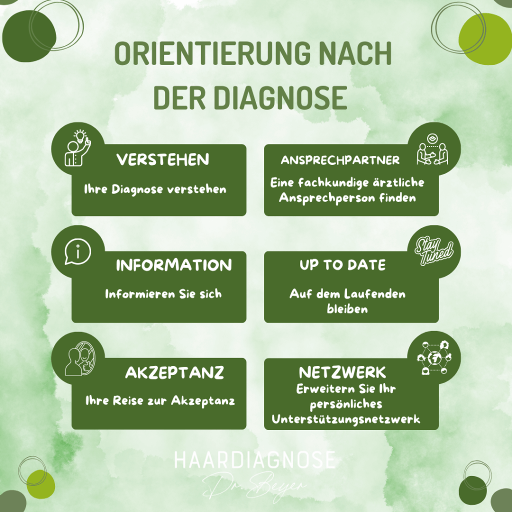 Wie geht es jetzt weiter?Unterstützung und Orientierung bei chronischen, entzündlichen oder vernarbenden Haarerkrankungen Eine neue Diagnose – und plötzlich ist alles anders Wer die Diagnose Alopecia Areata oder eine Form von vernarbendem Haarausfall (z. B. Frontal fibrosierende Alopezie (FFA), Lichen planopilaris (LPP) oder Folliculitis decalvans (FD)) erhält,… Wie geht es jetzt weiter? Unterstützung und Orientierung bei chronischem, entzündlichem oder vernarbendem Haarerkrankungen weiterlesen - Denn oft können wir nicht heilen. Aber wir können immer begleiten.