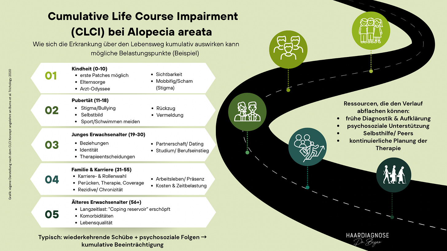 Der Cumulative Life Course Impairment, die kumulative Belastung über den Lebensweg, ist bei AA erheblich. Stigma in der Kindheit. Rückzug in der Pubertät. Einschränkungen in Partnerschaft und Beruf.