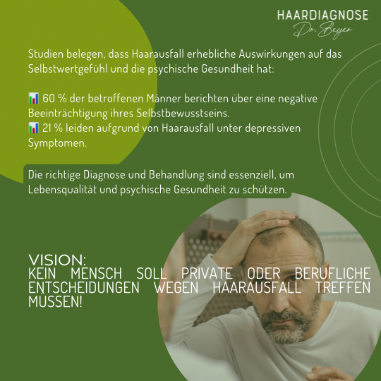 Studien zeigen, dass Haarausfall erhebliche Auswirkungen auf Selbstwertgefühl und psychische Gesundheit haben kann. Ein relevanter Anteil der Betroffenen berichtet über Einschränkungen des Selbstbewusstseins und depressive Symptome.
