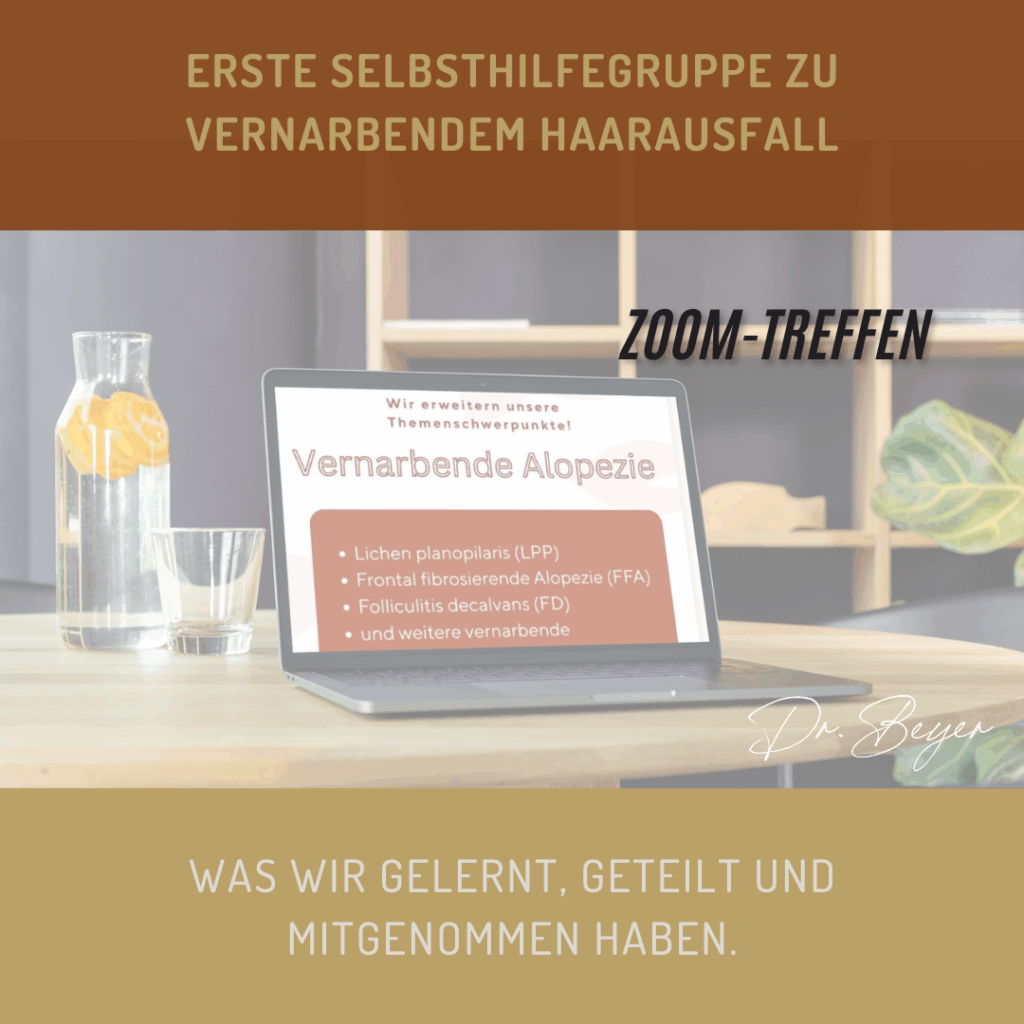 Off-Label-Use – was heißt das eigentlich? In der dermatologischen Praxis – insbesondere in der Behandlung von Haarausfall – begegnet man häufig sogenannten Off-Label-Anwendungen. Ein prominentes Beispiel ist orales Minoxidil in niedriger Dosierung zur Therapie der androgenetischen Alopezie. 1. Was bedeutet… Off-Label-Use – was heißt das eigentlich? weiterlesen - Rückblick: Erste Selbsthilfegruppe für vernarbenden Haarausfall