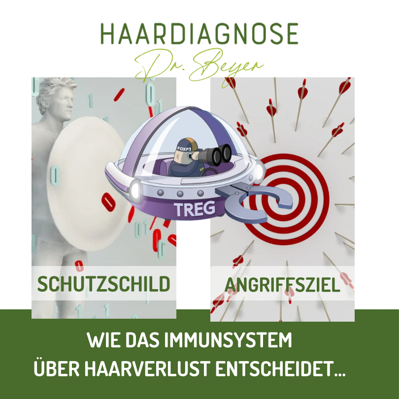 Mehrere Studien zeigen, dass Betroffene verminderte Treg-Zahlen und -Funktion sowohl in aktiven Herden als auch in unauffälliger Haut haben. Vor allem FOXP3⁺CD39⁺ Tregs fehlen signifikant. Dies ist eine spezielle Untergruppe, die für das Immunprivileg an Haarfollikeln verantwortlich ist. Zudem zeigte sich in experimentellen Modellen: Wenn Tregs fehlen, verlieren Haarfollikel diesen sogenannten immune privilege, also ihren Schutz vor Immunangriffen.