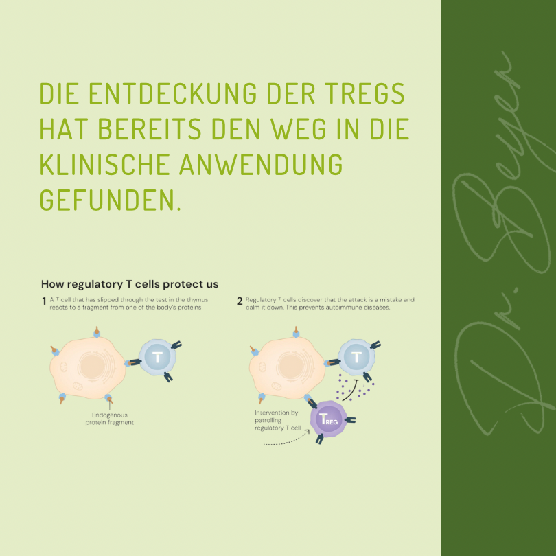 Auf Basis dieser Entdeckungen laufen derzeit weltweit über 200 klinische Studien, in denen versucht wird, regulatorische T-Zellen therapeutisch zu beeinflussen – entweder durch Stimulation (bei Autoimmunerkrankungen) oder Hemmung (bei Krebs) .