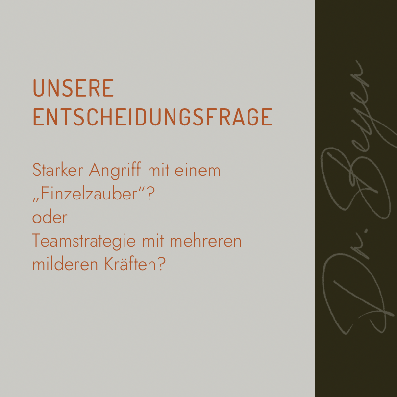 Soll ich mit einem mächtigen Einzelzauber (also einem starken Immunsuppressivum) versuchen, den Dämon direkt zu stoppen – oder lieber mehrere mildere Strategien kombinieren, um ihn Schritt für Schritt zu besänftigen?